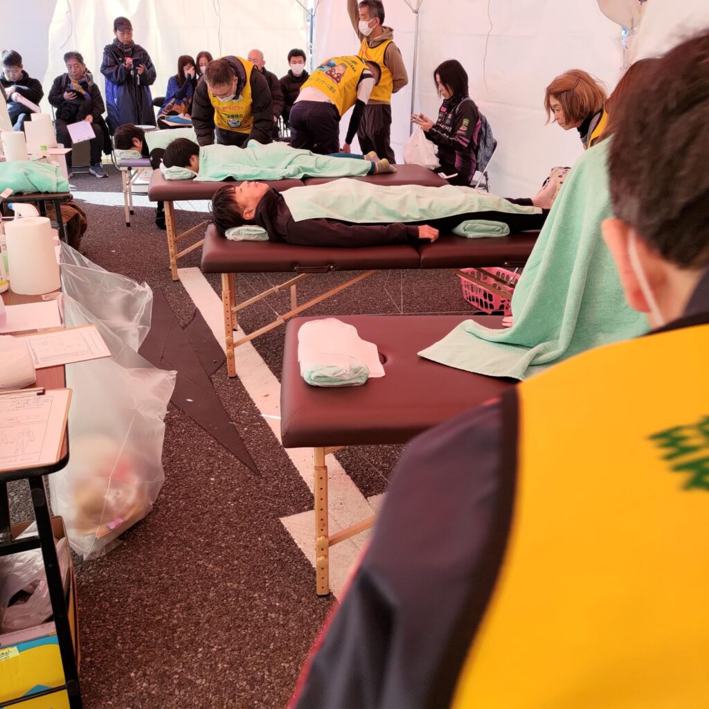 藤沢市鍼灸マッサージ師会はメイン会場のケアテントに於いて、鍼、マッサージのボランティアを行いました。
